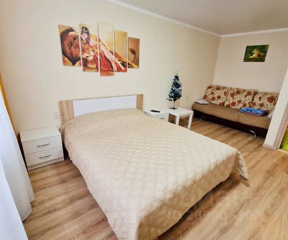 Эта комфортная квартира удобна тем, что имеет большую площадь, в квартире двуспальная кровать и два двуспальных дивана (три раздельных спальных места)
