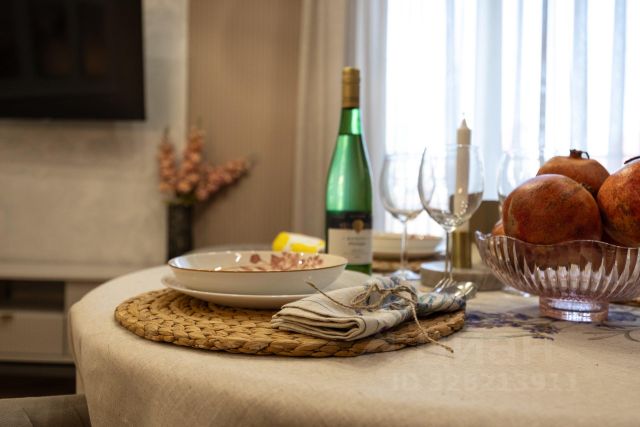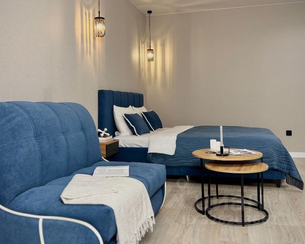 - В гостиной удобный раскладной диван, что обеспечивает комфортное размещение четырёх гостей. SMART телевизор , кондиционер, раздвижной круглый стол и удобные мягкие стулья.