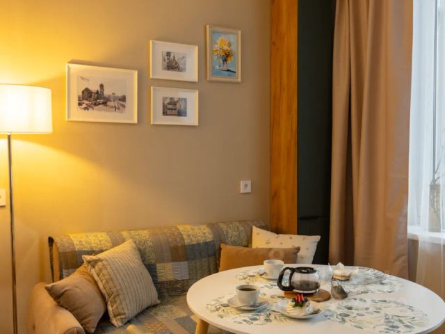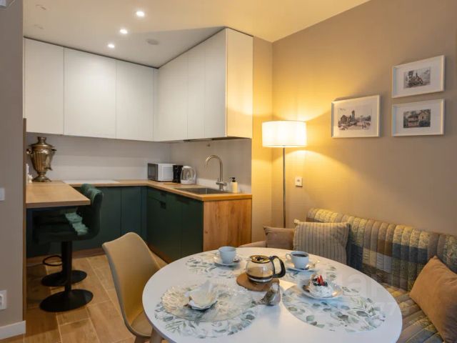Уютная, светлая, однокомнатная квартира в частном доме, в 5 минутах от пляжа Балтийского моря, со своей придомовой территорией, мангальной зоной и беседкой, в тихом месте пгт. Янтарный. Рядом детские площадки, продуктовые магазины. Размещение до 5 человек, большая светлая просторная комната, где два больших раскладывающихся дивана, одноместный диван, телевизор, шкафы для хранения ваших вещей, просторная кухня-столовая со всей необходимой кухонной посудой, начиная от чайных ложек, заканчивая всевозможными кастрюлями и сковородками. Ванная комната с большой душевой кабиной, стиральной машиной, феном. Отопление двухконтурный газовый котёл, поэтому нет проблем с горячей водой, всегда чистое бельё и полотенца. Размещение с животными обговаривается. Проживание не менее трёх суток. При бронирование от 7 до 10 дней предоставляется скидка от 3х до 5ти процентов.