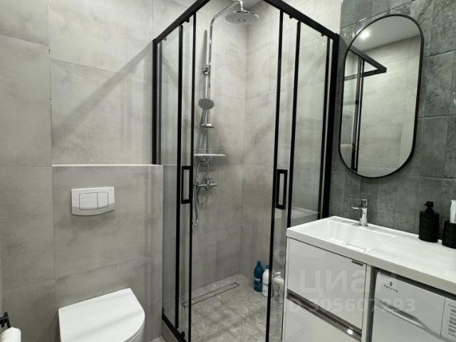 Ванная комната: душевая с тропическим душем, гигиенический душ, шампунь, гель, мыло.