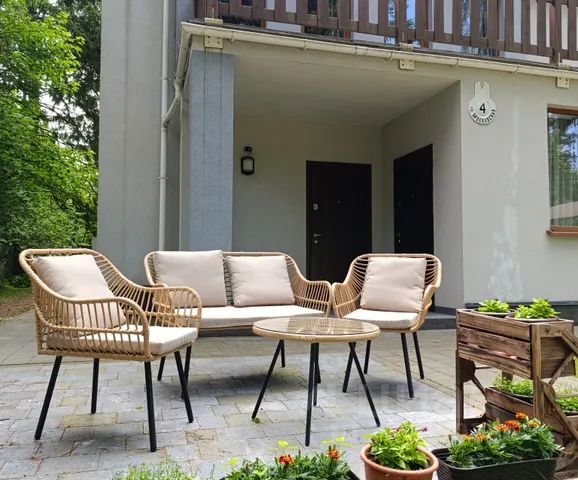 Особое предложение для компаний! Есть возможность снять на одном этаже два идентичных апартамента. Идеальное решение для большой компании или двух семей, желающих отдыхать рядом. Уютные апартаменты в немецком коттедже, Светлогорск-2. Идеальный вариант для самых требовательных гостей, ценящих комфорт, стиль и уединение. Ключевые преимущества: Простор 70 м²: Уютная гостиная, отдельная спальня, полноценная кухня и балкон. Стиль и экология: Уникальный дизайн с использованием натурального дерева. Идеальная локация: Тихий коттеджный район в шаговой доступности от центральной улицы Ленина. Виды на сад: Из окон и с балкона открываются прекрасные виды. Отдельный дом: Всего 4 апартамента в здании для спокойного отдыха. Об апартаментах и доме: Гостиная: Просторная зона с кожаным диваном, раскладным диваном на двоих, ТВ и журнальным столиком. Спальня: Большая двуспальная кровать с качественным бельем, шкаф, тумбочки и выход на застекленную лоджию. Кухня: Полностью оборудована (газовая плита, холодильник, СВЧ, чайник, вся посуда), есть обеденный стол. Ванная: Просторная душевая кабина, раковина, санузел. Техника и удобства: Стиральная машина, фен, утюг, гладильная доска, Wi-Fi, спутниковое ТВ. Для гостей: Предоставляются комплекты чистых полотенец и постельного белья (обработаны гипоаллергенными средствами). Расположение и инфраструктура: Центр: Рядом с главной улицей Ленина с кафе, ресторанами и магазинами. Море: Пешая прогулка до спуска к морю — около 30 минут. Достопримечательности: 2 км до Янтарь-холла (летний фестиваль КиВиН). Транспорт: 20 минут пешком до ж/д вокзала. Парковка: Рядом с домом есть огороженная парковка. Обратите внимание: декор в апартаментах может незначительно отличаться от представленных на фото.