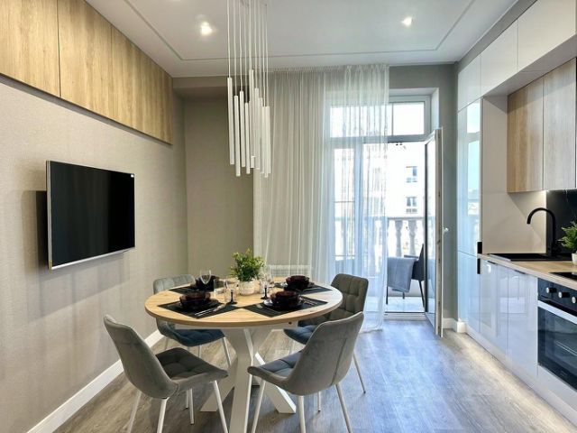 Кухня полностью оборудована: посудомоечная машина, холодильник, плита, микроволновая печь, чайник, вся необходимая посуда.