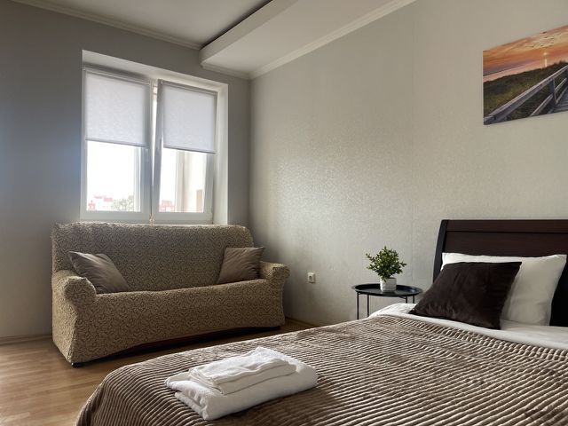 Уважаемые гости и жители города Калининграда! Рады предоставить для проживания уютную 1-комнатную квартиру в доме комфорт-клaсca. Квартира пoлнocтью укомплектована мeбeлью: удобная двуспальная кpoвaть 1600*2000, большой pacклaднoй диван, кухня и ванная комната с душевой. Aвтoнoмнoе отопление — огромное преимущество в любой сезон. Бытовая техника: телевизор (в том числе смарт-тв), бесплатный Wi-Fi, холодильник, микроволновая печь, плита, стиральная машина, чайник, отпариватель. Имеется всё необходимое для вашего комфортного проживания: посуда, постельное бельё, комплект полотенец, уходовые средства для гигиены, а также фен и сушилка для одежды. ЖК "Люксория" имеет закрытую дворовую территорию, которая ухожена и облагорожена: имеется детская площадка, приятная прогулочная зона. На территории дома есть бесплатная парковка. Через дорогу расположен супермаркет "Spar", аптеки, кафе, хозяйственные магазины. Очень удобное расположение к остановкам для автобусных маршрутов в любом направлении. Пешая прогулка по улице Артиллерийской приведет к набережной Верхнего озера с излюбленным местом обитания лебедей, также прокатом катамаранов и уютными кафе с прекрасным видом. От озера недалеко до парка "Юность", музея янтаря и площади Василевского. На маршрутном транспорте до острова им. Канта и центра города 20 минут, на машине 10 минут. Расстояние до железнодорожного вокзала "Южный" составляет 5 км, до "Калининград Северный" — 2 км (именно там отходят "Ласточки" на море, продолжительность комфортной поездки составит 25 минут). От дома также ведет прямая трасса к морю — это 25 минут на машине, и вы очутитесь на пляже Балтийского моря. До международного аэропорта "Храброво" 15 км. Также в шаговой доступности Нахимовское училище и Ранхигс. Стандартное время заезда — после 14:00, выезда — до 12:00. Если вам нужен ранний заезд или поздний выезд, по возможности, оговаривается заранее. Просим вас не шуметь и не включать громкую музыку/ТВ по будням до 9:00 утра и после 21:00 и в течение дня по выходным, чтобы не беспокоить соседей. Внимание: квартира не сдаётся для вечеринок! Курение строго запрещено! Стоимость проживания зависит от сезона, количества проживающих и от количества суток! При заезде требуются документы. Проживание от 3-х суток. Залог за сохранность имущества составляет 3000 рублей (возвращается в день выезда на карту после проведения уборки).