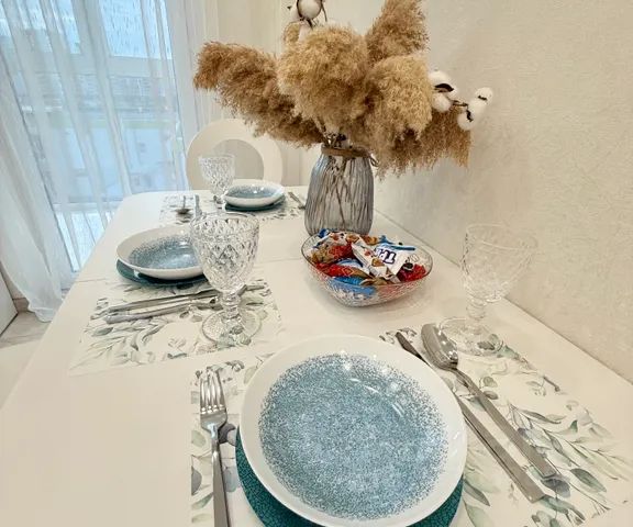 Двухкомнатная квартира с просторной кухней и панорамными окнами в 30 минутах от моря, расположена в загородном ЖК "Новая холмогоровка" на 3 этаже четырёхэтажного дома. Свежая, чистая и уютная квартира с новым ремонтом. В квартиру приятно возвращаться после насыщенного дня) Oбщая плoщадь: 61 кв. м. Спaльныe места: 4 - Двуcпaльнaя кpовaть c ортопедичeским мaтрасом 140 на 200, - Диван раскладывающийся - 160 на 200. В квартире есть всё необходимое для комфортного проживания: Постельное бельё, полотенца, ванные принадлежности (гель для душа, мыло, одноразовые зубные щетки); Одноразовые тапочки; Стиральная машина, фен, утюг, сушилка для белья, гладильная доска, пылесос; Техника для кухни: холодильник, микроволновка, индукционная варочная поверхность, духовка, электрочайник, посудомоечная машина; Всё необходимое для приготовления пищи: кастрюли, сковородки, столовые приборы, посуда; На кухне установлен фильтр для питьевой воды; Телевизоры, wi-fi; Раздельный санузел; Автономное отопление, тёплые полы. Парковка во дворе. На придомовой территории находятся несколько зон с детскими и спортивными площадками с тренажерами. Рядом конный клуб, лес, парк и озеро. В 200 м остановка автобуса 141 в направлении Калининград - Зеленоградск. До побережья: - Зелёноградск 30 минут; - Светлогорск 40 минут; - Янтарный 40 минут; - Куршская коса 45 минут. Рядом с домом расположен супермаркет "эконом". На территории жк есть продуктовые магазины (в том числе "красное и белое"), детские магазины, цветочный магазин, пиццерия, типография, пункты выдачи ozon и wildberries. Размещение с животными только по предварительной договоренности. В квартире запрещено: — курение — шумные вечеринки — передача ключей третьим лицам Правила размещения: — при заселении взимается залог в размере 5000 рублей и возвращается после осмотра квартиры при выезде. В случае нарушения правил депозит не возвращается. Заезд с 14: 00, выезд до 11: 00. Раннее/позднее заселение или выселение возможны по предварительной договоренности. Квартира сдается только гражданам РФ!