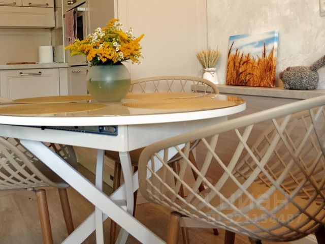 Кухонная зона кухонный гарнитур со встроенной техникой, кофемашина, индукционная плита, духовой шкаф, чайник, посудомойка, холодильник, вся необходимая посуда на четыре персоны, обеденный стол и стулья.