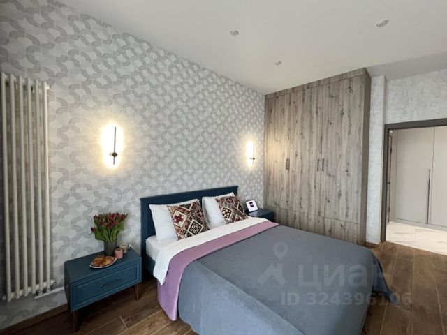 В апартаментах до 5 спальных мест (но максимум 4 взрослых). 2 спальни (смежные). В одной спальне круглая кровать диаметром 200см, подвесное кресло, письменный стол. В основной комнате раскладной двуспальный диван, ТВ, шкаф, комод. Кухня-столовая оборудована плитой, посудомоечной машиной, есть капсульная кофемашина, микроволновая печь, чайник, ТВ, полный набор посуды и кухонных принадлежностей, также здесь есть диван. В Ванной комнате дизанерская раковина из натурального камня, душевая. Также квартира укомплектована стиральной и сушильной машиной, гладильными принадлежностями, есть пылесос, кабельное ТВ, бесплатный высокоскоростной интернет WiFi.