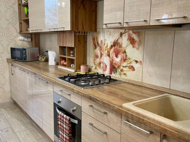 Телевизор со смарт тв, wi-fi, кабельное телевидение. Кухонные принадлежности новые- посуда, столовые приборы, кастрюли. Разместятся 5 человек. Спальные места очень удобные, матрас новый, комфортный. Двухспальная кровать 160х200, раскладной диван, односпальная кровать. Постельное, полотенце абсолютно новое, качественное. Есть кофе, чай, сахар, соль, средства гигиены, шампунь, гель для душа, бытовая химия, утюг, фен, гладильная доска, сушилка и т. д.