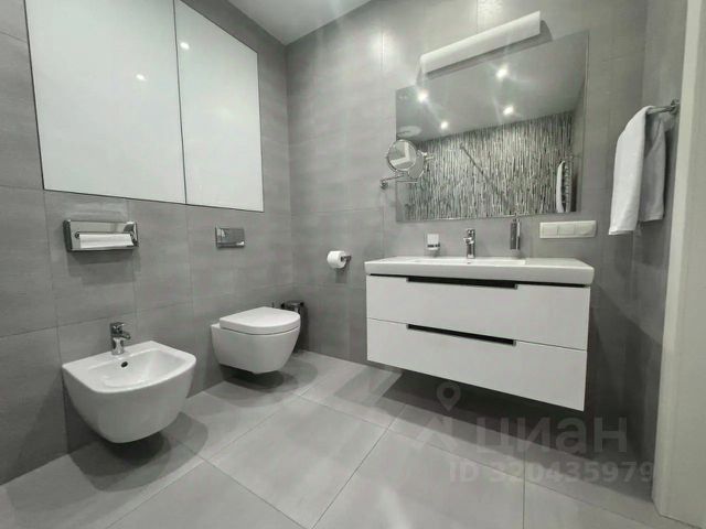 Огромный (32 кв.м) санузел, в котором нашлось место для романтической ванны, 2 диванов для отдыха, душевой кабины, двух раковин и двух унитазов с гигиеническим душем, а также стиральной машины. Санузел оборудован всем необходимым (средства гигиены, зубная паста, фен и ещё много того, что совсем не хочется брать с собой в путешествие).