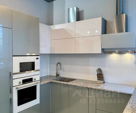 Кухня оборудована посудомоечной машиной, вытяжкой, индукционной плитой, микроволновой печкой, духовым шкафом, холодильником с морозильной камерой + вся посуда для проживания.