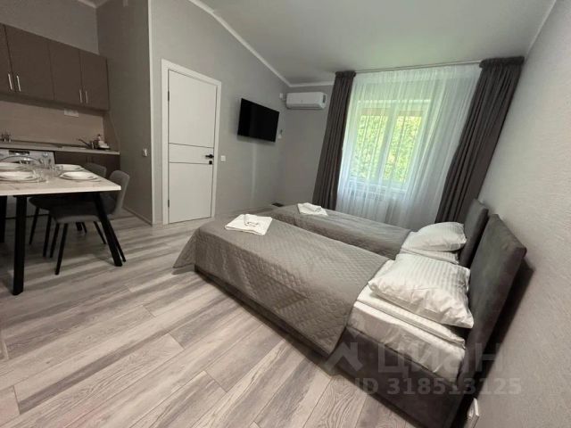 С окон апартаментов открывается чудесный вид на закат, море и парковую рощу с пением птиц, где обстановка уюта проживания сделают ваш отдых незабываемым!