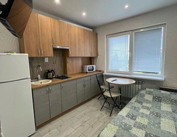 В апартаментах есть все для комфортного проживания 2 человек, возможно размещение 3 человек (диван на кухне шир. 73 см.). Есть отдельная спальня и кухня с зоной для отдыха с диваном, телевизором и столиком для кофе. В спальне светонепроницаемые шторы.