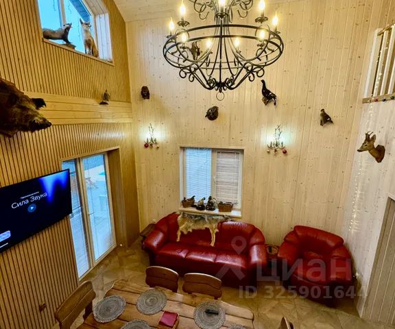 - 2 этаж - гостиная-каминная (большой обеденный стол, камин, небольшой столик с креслами и диваном, большой холодильник, телевизор), кухня, спальная комната, санузел с душевой.