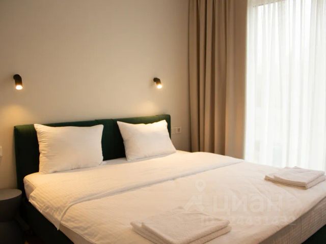 Спальня , с огромной кроватью два на два метра и матросом Аскона , кондиционер , телевизор , шторы блэкаут . Имеет выход на террасу.