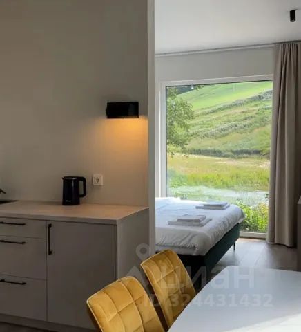 Гостиная оборудована телевизором ( Кинопоиск , ОККО ) и большим двух спальным диваном. Имеет выход на террасу .
