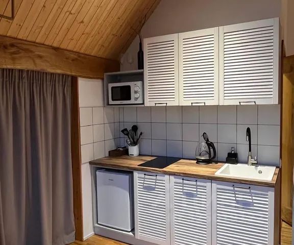 Трехместный комфорт с террасой расположена на 2-м этаже жилого дома на огороженной территории ЖК Любимая Дача. Комната полностью укомплектована постельным бельём, полотенцами и туалетными принадлежностями (жидкое мыло и туалетная бумага). Комната состоит из двух комнат с одним санузлом и в ней могут разместиться 3 человека и 4-ый на доп.месте с доплатой. В гостиной этого Комнаты, площадью 17.6 м2, находятся: диван, шкаф для одежды, журнальный стол, маленький холодильник, Интернет по WiFi. Из гостиной Вы можете попасть на открытую террасу, площадью 12 м2, с видом на сад. В спальне, площадью 9.6 м2, находятся: двуспальная кровать, комод. Санузел, площадью 4 м2, с душевой, умывальником, унитазом и полотенцесушителем. Комната имеет горячее водоснабжение и отопление. В этом же доме есть гостевая кухня с газовой плитой, электродуховкой , микроволновкой, большим холодильником, и набором всей посуды для самостоятельного приготовления пищи и сервировки нашими гостями. Также есть большая общая гостиная, площадью около 55 м2, где наши гости могут проводить время с 08-00 до 22-00. Гости, которые проживают в этой Комнате пользуются всей инфраструктурой ЖК Любимая Дача, а именно - общей гостиной и общей гостевой кухней, парковкой (одно авто на комнату), всей территорией, беседками, мангалами для барбекю, детской площадкой, спортплощадкой, спортинвентарём - ракетками для бадминтона, мячами для волейбола, футбола.