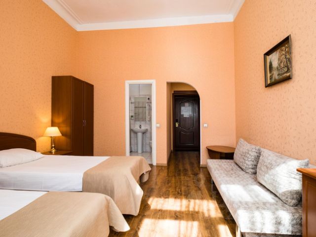 Наша студия находится на втором уровне двухэтажных апартаментов, на первом - проживает ее радушная хозяйка. При этом будьте уверены, вас никто не побеспокоит - уровни разделяет лестница и дверь.