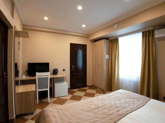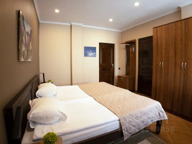 Номер состоит из двух комнат: кухни ,совмещенной с гостиной и спальни, прихожей и ванной комнаты, площадью 50-55 кв. м. Номер меблирован по евростандарту и оборудован всем необходимым для комфортного отдыха.