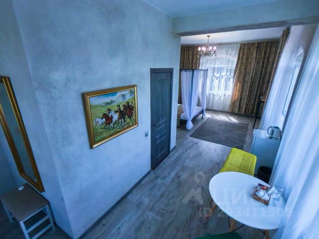 Единственный номер с камином, расположен в отдельном здании. Домик полностью после реновации. В номере данной категории располагается: двуспальная кровать и диван кровать для 2-х человек, кондиционер, холодильник, телевизор, wifi. В номере две комнаты: спальня и гостиная. Вид из окна на главный двор.