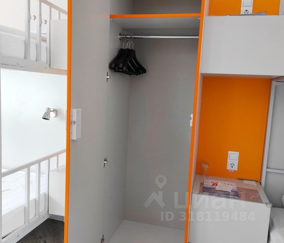 Мужской номер. В номере на восемь гостей четыре двухъярусные кровати. У каждого отдельный шкафчик под ключ. Шторки на кроватях. У каждого полочка и по три розетки, индивидуальный свет. Выдаются банные полотенца. Зеркало в номере. Отопление центральное. Пол ламинат. Вешалки на шкафчиках для одежды и крючки на кроватях. Два столика в номере, стулья.