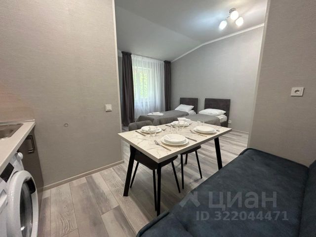 Уютная студия сдается от трех суток и более, есть все необходимое для проживания, магазины и автобусная остановка в шаговой доступности. Квартира не сдается для развлекательных мероприятий и лицам моложе 21 года без родителей. Точное расположение напротив дома номер 20.