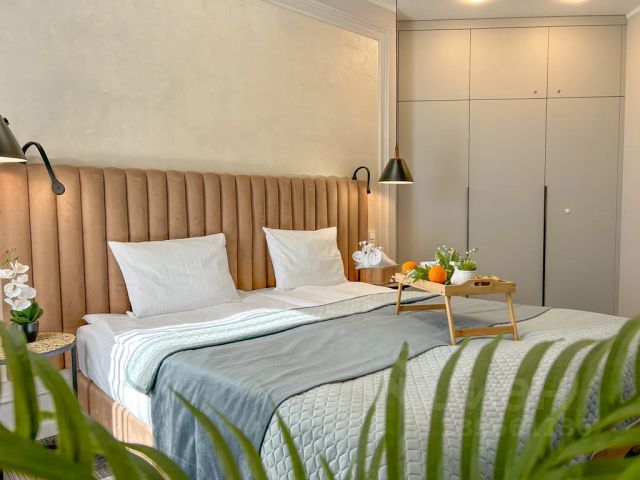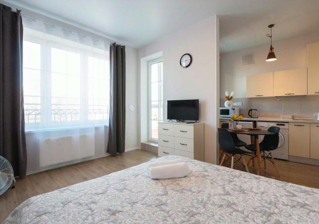 Идеальное предложение для тех кто хочет получить максимальный комфорт и уют. В апартаментах есть все самое необходимое для комфортного проживания: двуспальная кровать, высокоскоростной Wi-Fi, телевизор, оборудованная всем необходимым кухня (микроволновая печь, холодильник, чайник, столовые приборы и посуда), стиральная машина, оснащенная ванная комната, чистое и свежее постельное бельё и полотенца, оснащённая ванная комната.