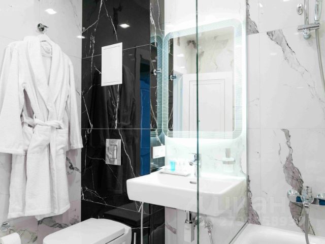 Ванная комната: душевая с тропическим душем, гигиенический душ, шампунь, гель, мыло.
