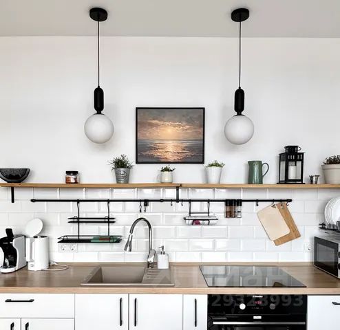Кухня с техникой: посудомоечная машина, холодильник, духовой шкаф, индукционная плита, капсульная кофеварка (для капсул nespresso и dolce gusto), чайник, фильтрованная питьевая вода, всё для готовки и сервировки стола;