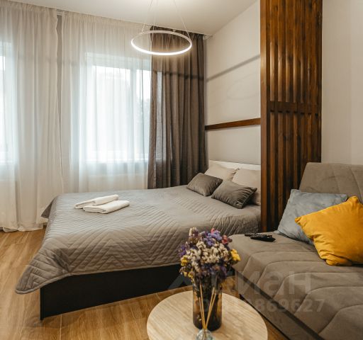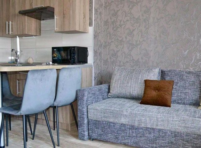 Сдаетя уютная студия с дизайнерским ремонтом в монолитно-кирпичном доме 2022 года постройки. Просторная кухня оборудована необходимой техникой: холодильник, плита, микроволновая печь и стиральная машина. В комнате установлены 2 дивана, есть шкафы для хранения вещей. Санузел совмещенный, оформлен современной плиткой, оснащён ванной и стиральной машиной. Лоджия застеклена, что позволяет использовать её круглый год. Рядом магазины, школа, остановка общественного транспорта,есть вся необходимая инфраструктура. Во дворе большая детская площадка. Курение запрещено, можно с детьми, без животных.