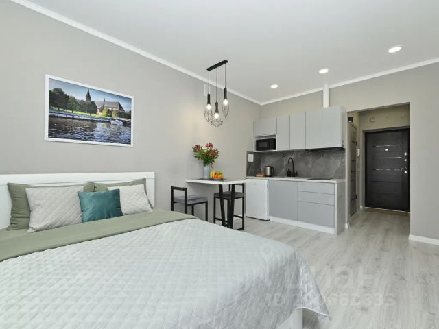 В квартире вся необходимая бытовая техника, посуда, столовые приборы, средства гигиены, фен, постельное белье и полотенца, швейные принадлежности, губка для обуви, ролик для одежды. Утюг, гладильная доска. Шторы блэкаут + ролеты.