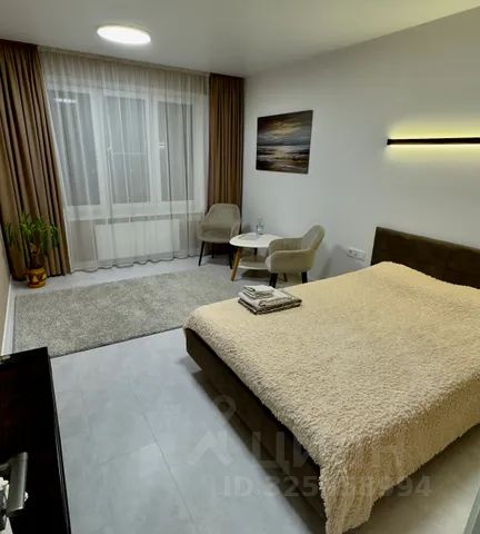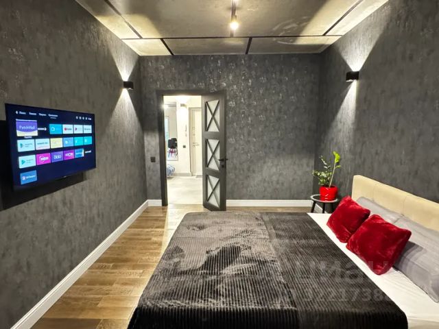В комнате: кровать двуспальная с матрацем, телевизор Sony smаrt tv, шторы и тюль, установлен терморегулятор отопления. Всё как на фотографиях.