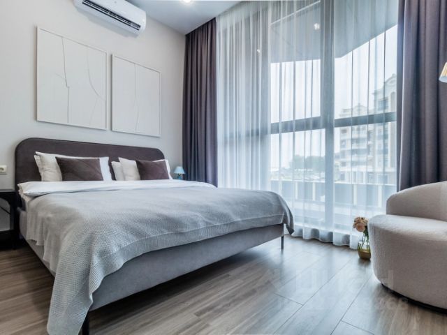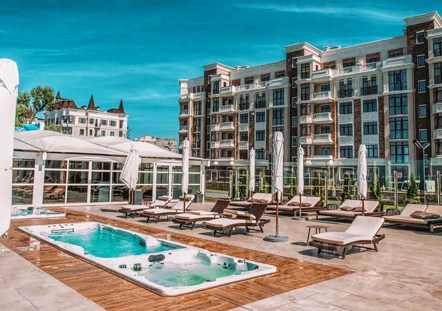 Комплекс комфорт-класса находится на первой линии от моря. Бесплатная парковка, современная детская площадка.