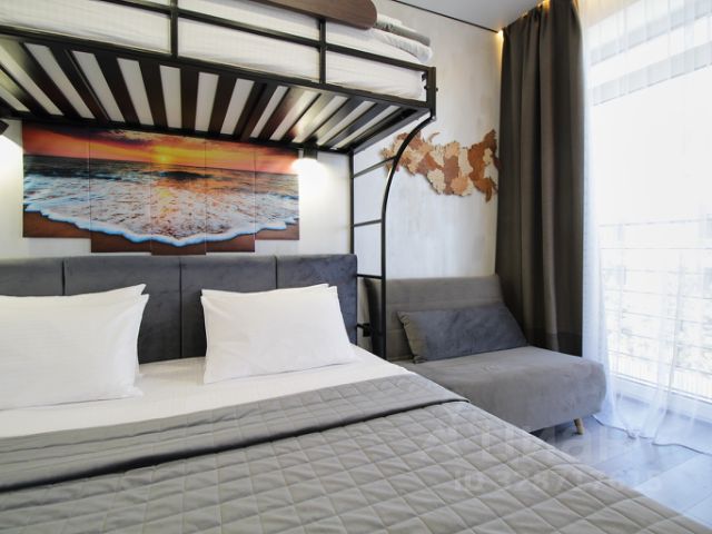 Комфортная двуспальная кровать, раскладной диван. В ванной комнате для каждого гостя предоставлены свежие полотенце, тапочки, гель для душа, шампунь, мицеллярная вода, ватные палочки, диски, средства для стирки.