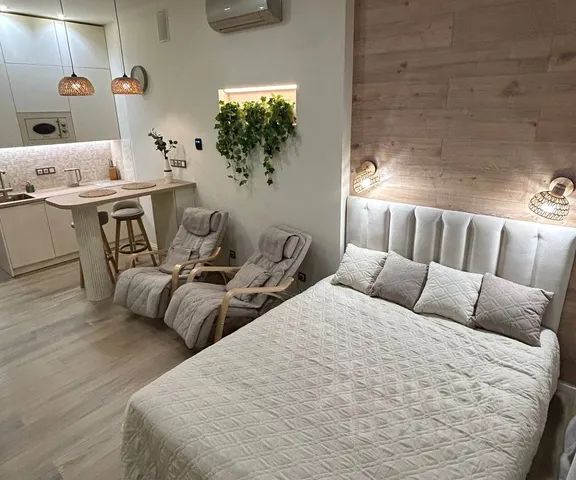 Две изолированные комнаты: кухня-гостиная и спальная. Двухспальная кровать с ортопедическим матрасом 200Х160 в спальне и большой диван так же с ортопедическим матрасом 200Х160 в кухне-гостиной.