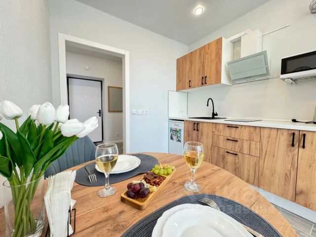 Принимаем бронирование с 31.08.24. Июль/август - нет свободных дат( Новые апартаменты современная квартира-студия (Лофт). Новый дом (12 кв.), огороженная территория. До моря 200 м. Рядом (в шаговой доступности) променад, пляж, кафе, городской парк - Сосновый бор, спортивная и детская площадки, продуктовые магазины. Площадь 32 кв.м. Вид на сад (лужайки Резиденции) 3 спальных места Комната (оснащение): Диван-кровать Кресло-кровать Обеденный уголок Кондиционер ТВ WIFI Кухня (оснащение): Варочная поверхность (индукционная) Вытяжка Микроволновая печь Холодильник (с морозильной камерой) Посудомоечная машина Чайник эл. Кух. инвентарь Комплект посуды (фарфор, стекло, приборы) Коридор (оснащение) Гардеробная Гладильная доска Утюг Сушилка для белья Пылесос Уб. инвентарь Сан. узел (оснащение) Душевая Стиральная машина (с сушкой) Фен Комплект полотенец Туалетнокосм. принадлежности Сдается от 3-х суток. В период с июня по август - цена по запросу. При необходимости - организация трансфера от/до аэропорта. Дополнительно предлагаем прокат автомобилей. При бронировании апартаментов скидка на услуги проката 20%