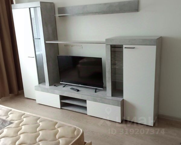 Студия комфортно разделена на зоны: кухонную, гостиную и спальную, а также включает совмещенную ванную комнату.