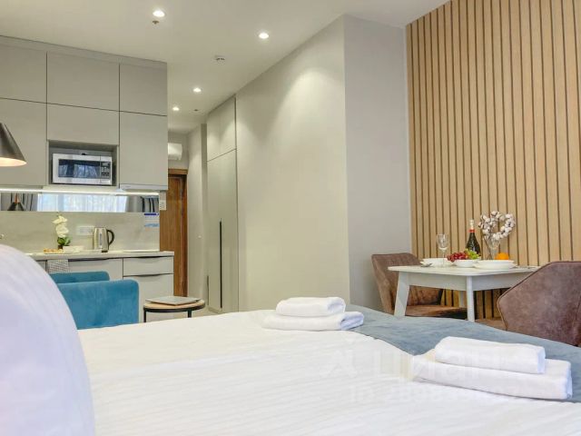 - Уютная кухня со всей необходимой мебелью, техникой и посудой.