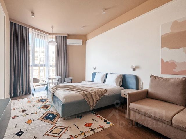 Уютная квартира у моря в Зеленоградске Сдаётся новая, комфортная квартира-студия в современном жилом комплексе. До центра и пляжа — всего 2 км: Пешком — 20 мин На авто — 5 мин Автобус (остановка рядом) Электросамокаты у дома Такси — от 120₽ Рядом супермаркет SPAR и ТЦ Вишнёвый — магазины, аптеки, кафе, салоны и всё, что нужно для жизни. Всё для комфортного проживания: 3 спальных места: Двуспальная кровать (160 х 200) Диван-кровать (140 х 200) — подойдёт для одного взрослого или двух детей Панорамные окна, анти-москитные сетки во всех комнатах, тёплый пол Wi-Fi, Smart-TV Полностью оборудованная квартира: посудомоечная и стиральная машины, микроволновка, холодильник, варочная панель, чайник, утюг, фен, гладильная доска Чистое постельное бельё и полотенца Гигиенические принадлежности, средства для стирки Зонт и дождевики — на случай плохой погоды Условия проживания: До 3 гостей Курение и вейпы запрещены (в т.ч. на лоджии). При нарушении — залог не возвращается. Без вечеринок и животных Можно с детьми Заезд с 14:00, выезд до 12:00 Ранний заезд/поздний выезд — по согласованию Залог 5 000₽ — возвращается в день выезда при отсутствии порчи имущества Возможность бесконтактного заселения / выселения Внимание: в доме возможны кратковременные шумы — идут ремонтные работы (только днём). Мы гарантируем чистоту, уют и тёплый приём! Пишите — отвечу быстро, с радостью примем Вас в гости! Бронируя квартиру, Вы соглашаетесь с правилами проживания.