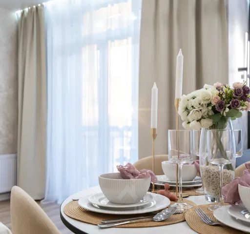 Полностью укомплектованная мебелью и посудой кухня