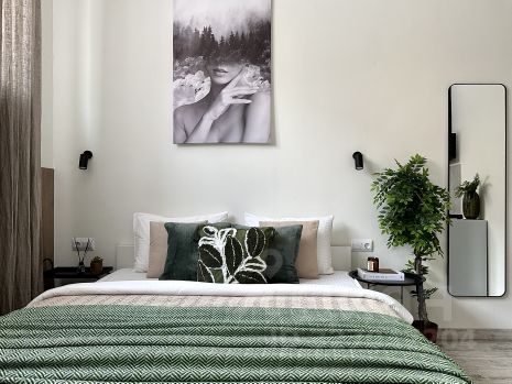 В апартаментах двуспальная кровать (180х200), кухня со всем необходимым (холодильник, плита, микроволновая печь, чайник, а так же посуда и приборы), остекленный балкон, стиральная машина, фен, утюг, гладильная доска, сушилка для одежды, телевизор и высокоскоростной Wi-Fi, шампунь, гель для душа, жидкое мыло, зубная паста, ватные палочки, ватные диски, стиральный порошок, чай, кофе, сахар, соль, масло.