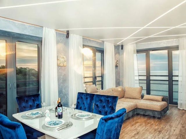 Совмещённый санузел (душевая кабинка, стиральная машина с сушкой белья, зеркало с тумбой, полотенцесушитель), двуспальная уютная кровать,кресло-кровать, встроенная кухня, микроволновая печь, электроплита, вытяжка, посудомойка, холодильник, чайник, большой телевизор, кухонный столик, стулья - 4шт, 2- пляжных лежака на море, 3- комплекта белья, 3-полотенца, для рук, банные, 3 -подушки, 2 -одеяла. столовые приборы (вилки, ложки, ножи, штопор и др. ), посуда, бокалы, моющие средства, шампунь и др.