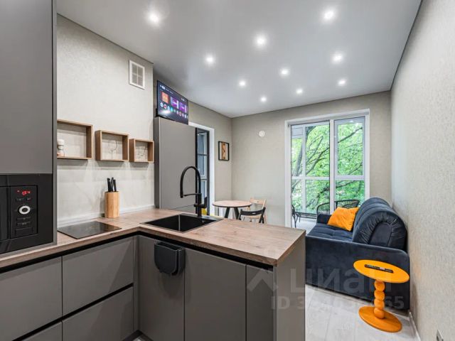 Кухня оборудована всей необходимой техникой: вместительный холодильник, чайник, индукционная плита, микроволновая печь. Имеется полный комплект посуды: тарелки, стаканы, бокалы, чашки, кастрюли, штопор и тд!
