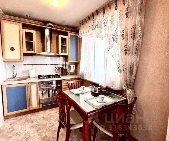 Оборудованная кухня со всей необходимой утварью и посудой, в том числе капсульная кофемашина, обеденный стол. Вид из окна -
