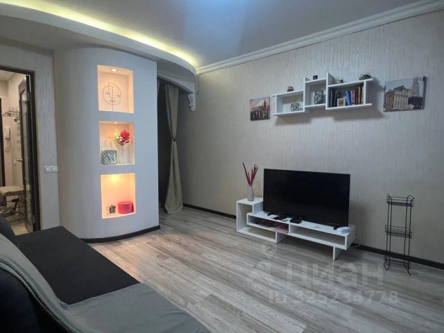 Гостиная - раскладной диван 150*200, ТВ с кабельными каналами, функцией Smart TV, балкон с которого открывается вид на улицу.