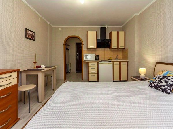 Фото еще добавлю,т.к там еще проживают до 10 марта.Квартира- студия в новостройке очень уютная и компактная.Есть кровать 150200см,