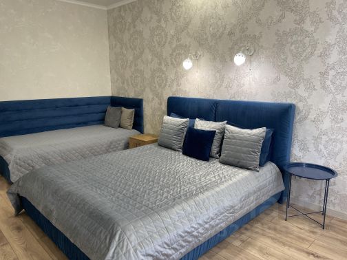 Всего размещается 3 чел - (2+1): кровать 2-ух спальная - 160х200, раскладное кресло-кровать - 90х190.