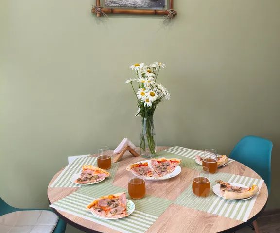 Для приготовления вкусного обеда, ужина или завтрака: набор специй, масло растительное, чай зелёный и чёрный в пакетах и листовой, кофе растворимый и молотый, сахар, соль, перец. А так же, в наличии вся необходимая посуда.