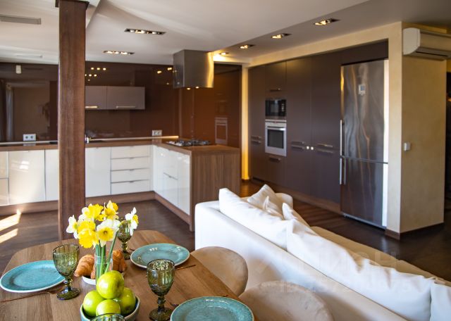 Квартира оснащена современной техникой: телевизор (кабельное tv + интернет), стиральная машина, фен, утюг, гладильная доска, холодильник, чайник, тостер, турка, заварной чайник, микроволновка, духовой шкаф + варочная панель стеклокерамика (не газ), автономное отопление, кондиционер, москитные сетки.