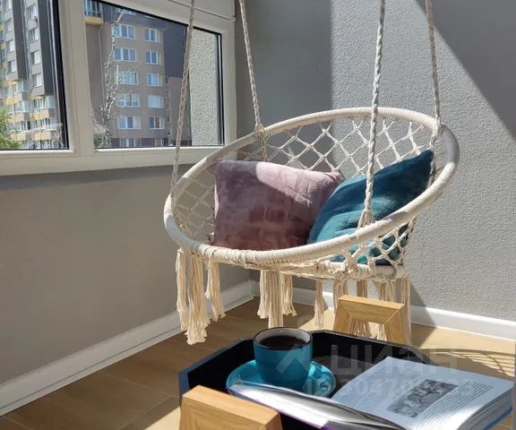 Уютная, просторная лоджия с креслом-гамаком, барной стойкой - лучшее место для отдыха вечером. Великолепный вид на тихую улочку.