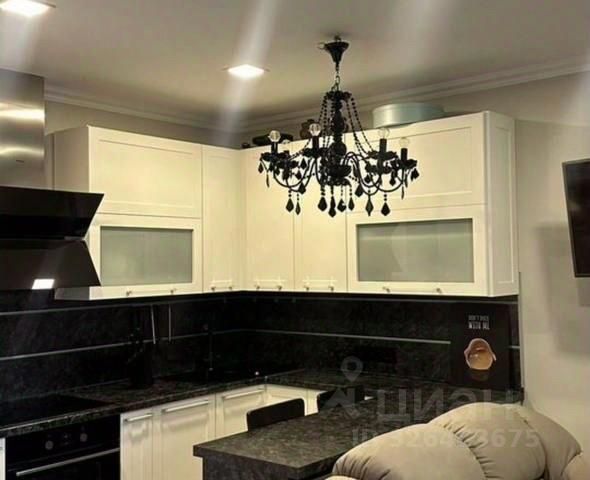Кухонная зона кухонный гарнитур со встроенной техникой, кофемашина, индукционная плита, духовой шкаф, чайник, посудомойка, холодильник, вся необходимая посуда на четыре персоны, обеденный стол и стулья.